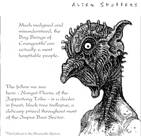 The Essential Alien Spotters' Companion is a concept for kids, as well as for adults who have no intention of leaving that goggle-eyed state of wonder we all encounter when we meet up with our first alien.