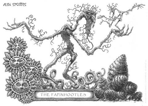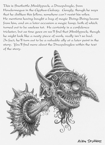 The Essential Alien Spotter's Companion would purport to be the collected drawings, paintings, sketches, film footage, notes and ramblings of an eccentric, Galaxy-hopping, alien anthropologist, and his young assistant, which had just come to light.